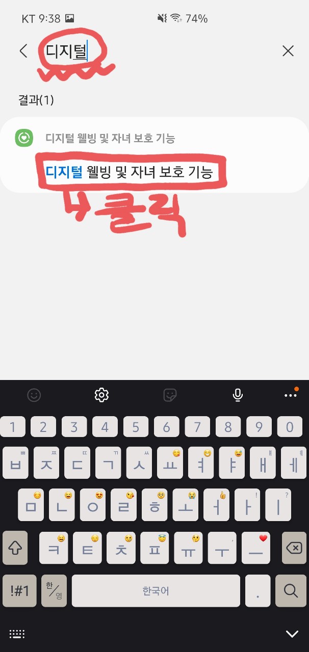 3. '디지털' 이라고만 검색 -> [디지털 웰빙 및 자녀 보호 기능] 이 나오면 클릭합니다!