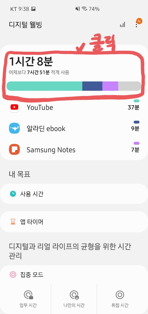 같이 휴대폰 하루 사용시간을 확인해보겠습니다!